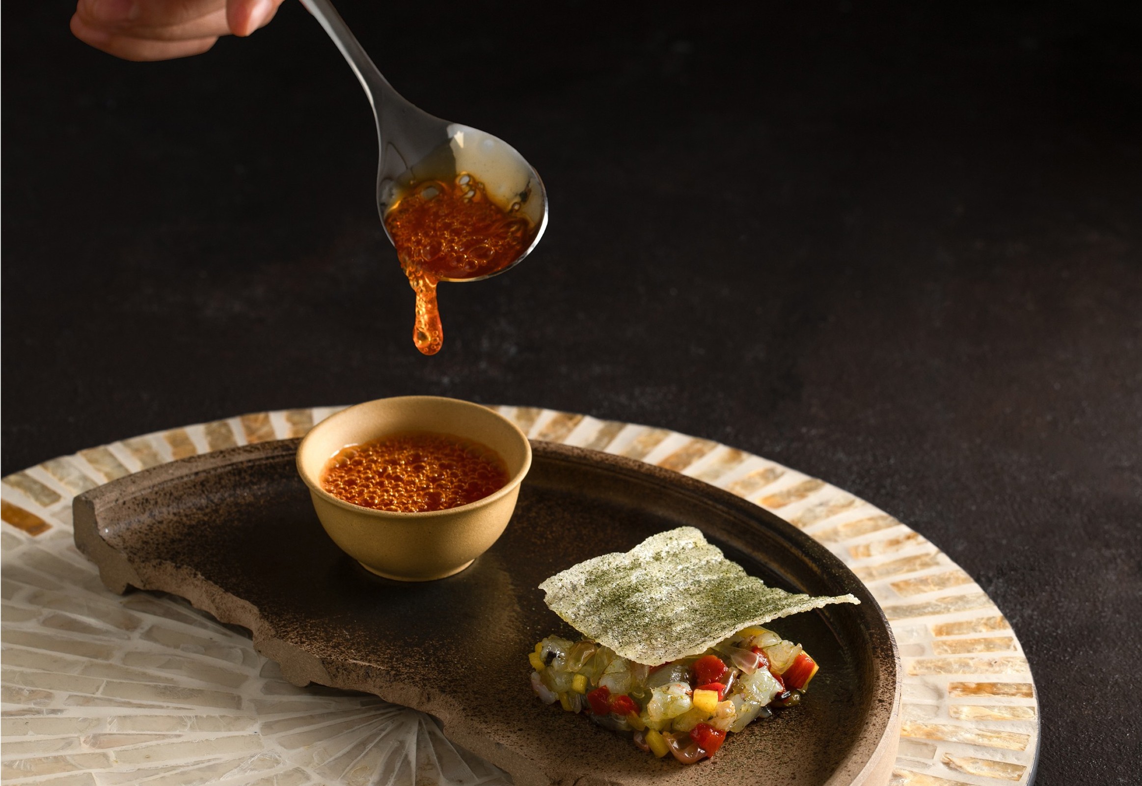 If space is the canvas, then food is the art that brings it to life. At Vien, each dish is more than a culinary creation — it is a thoughtful narrative woven from tradition, memory, and imagination. Every herb, every grain, and every garnish tells a story: a whisper of the northern mountains, the fragrance of the southern orchards, the freshness of the central coast. Here, herbs are not merely an accompaniment but a delicate punctuation, awakening the palate, evoking nostalgia, and connecting diners to the land and its seasons.